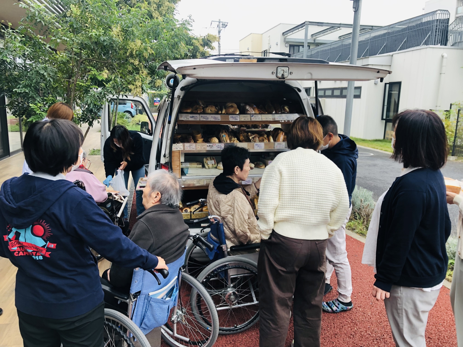 先日移動パン屋さん「佐倉ゆめ工場」が来荘しました。自分で選ぶパンに入居者様もわくわく☆楽しい時間を過ごしました!