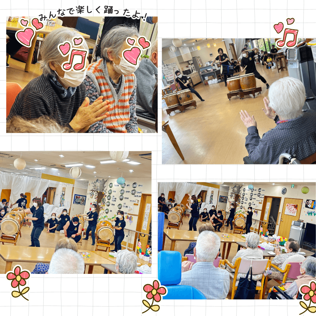 入所者さまも利用者さまも和太鼓の音に心弾みました♪