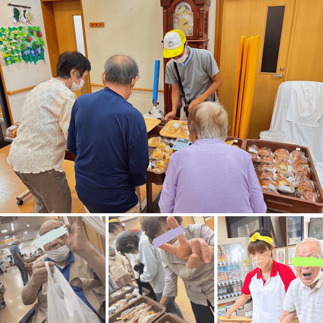 毎月、利用者さまも職員も楽しみにしている焼き立てパン屋さんの日今回は初めましての、「きいろいくるまのパン屋さん」に来ていただきました♪
