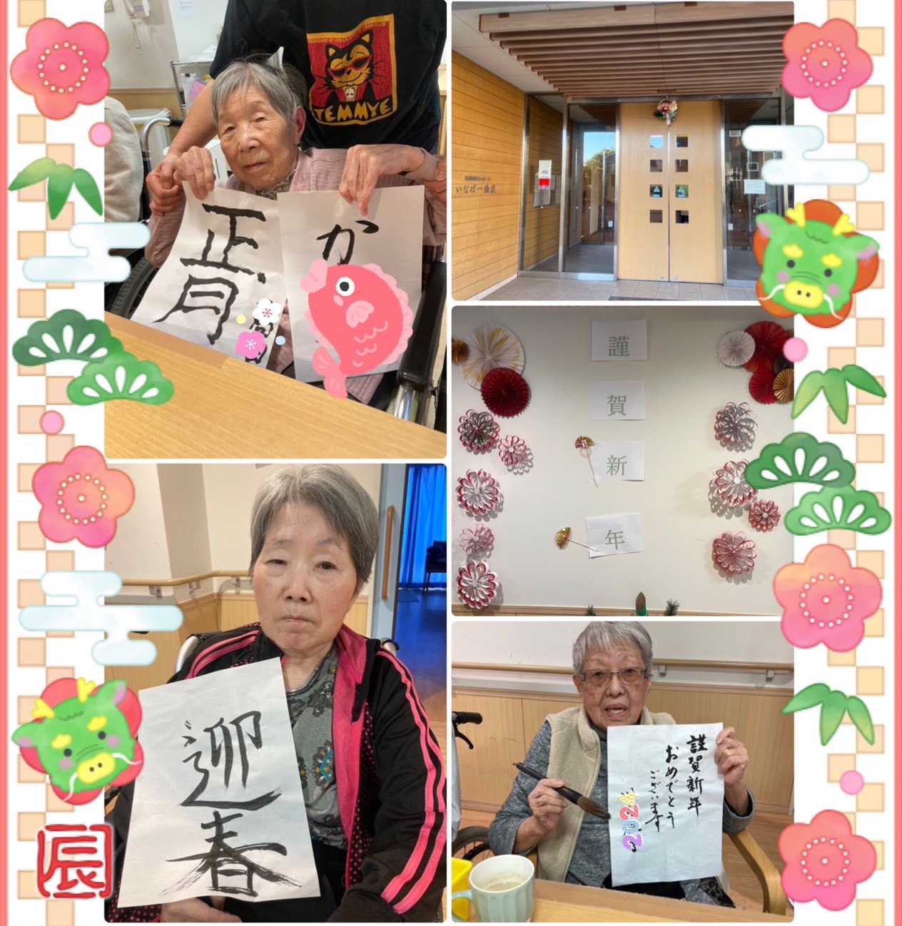 いなげ一倫荘では正月を感じる一環として部屋の飾りつけだけではなく書き初めに挑戦いたしました!