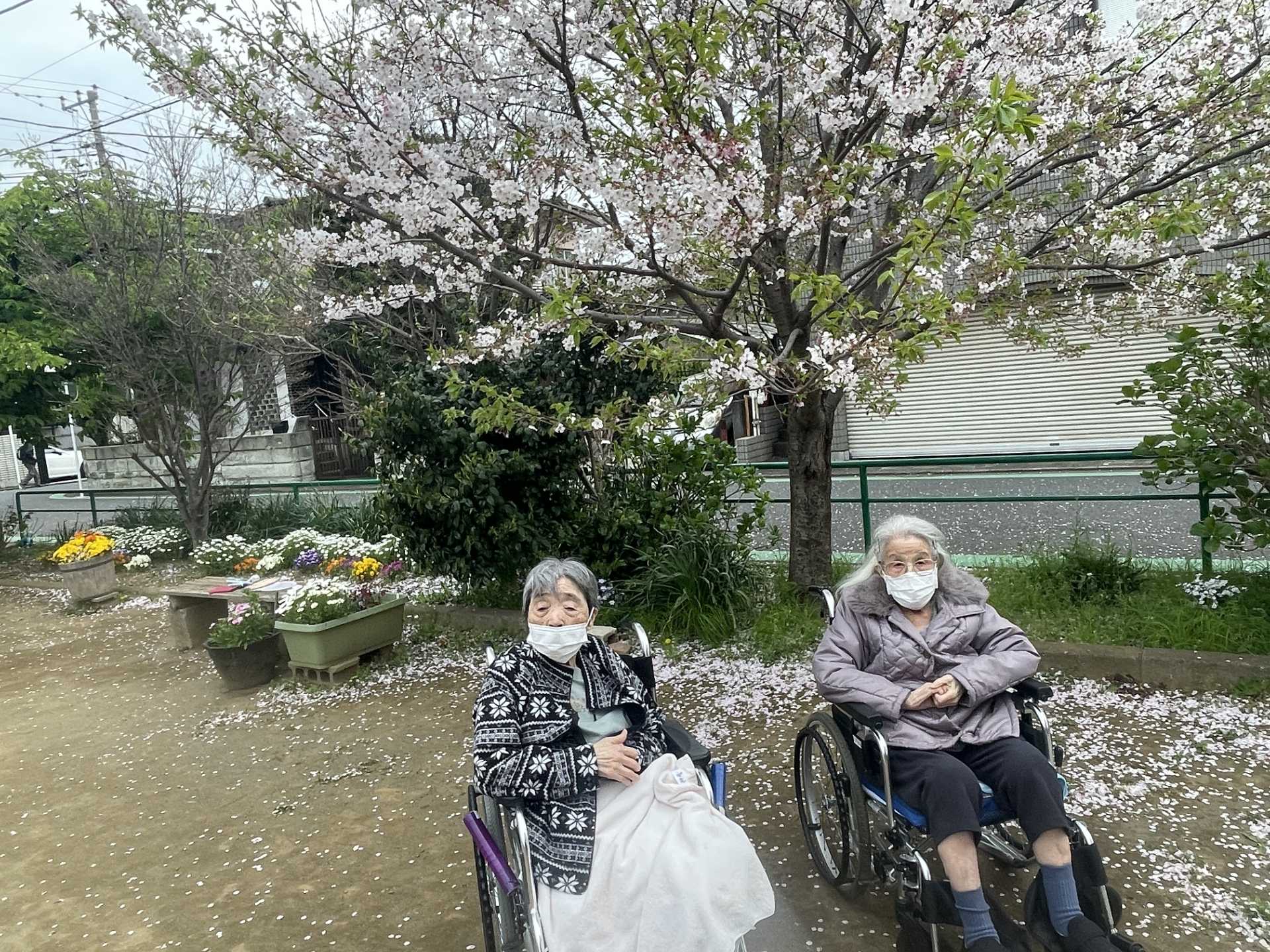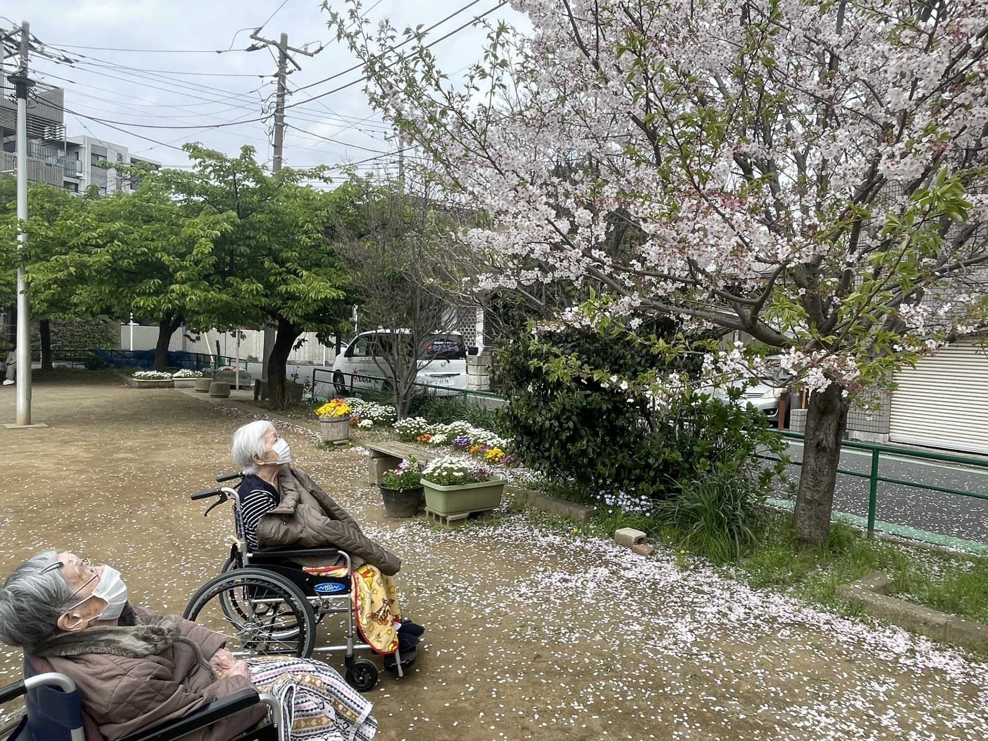 風に乗って桜がふんわりと舞っていました。入居者様からは「桜が綺麗」と喜んでいました