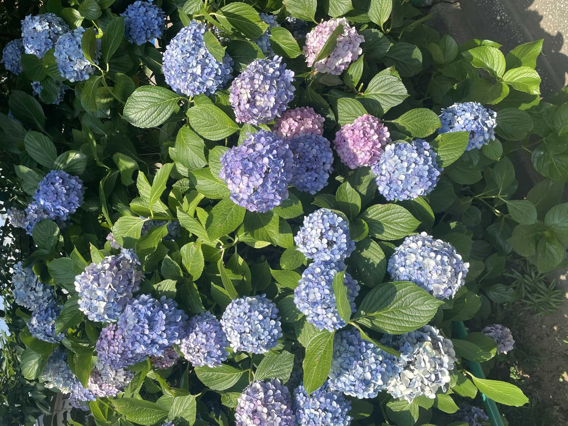 青色・紫色の、「あじさい」が綺麗に咲いていています。